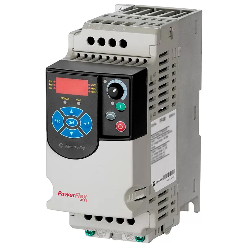 - PowerFlex 4xx. Диапазон мощности этих устройств составляет 0,2 до 250 кВт. Это бюджетное устройство, продается в базовой комплектации. Однако в приборе присутствуют дополнительные функции, которые позволяют решать большую часть целей, которые не требуют использования энкодера. Популярностью пользуется модель allen bradley powerflex 40 и другие модели;