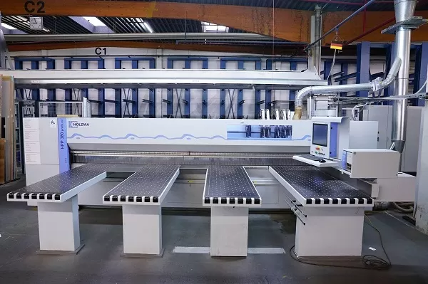 Станок с ЧПУ Holzma оснащен цветным ЖК-дисплеем размером 17 дюймов с возможностью отображения трехмерных графических объектов. Станочное оборудование имеет несколько раскроечных карт, включая симметричную, асимметричную и с головным резом. Общая продолжительность работы с тремя картами составляет всего 148 секунд. Допустимый температурный режим, при котором не требуется дополнительная установка кондиционера в распределительном шкафу, составляет +5…+35˚С.
