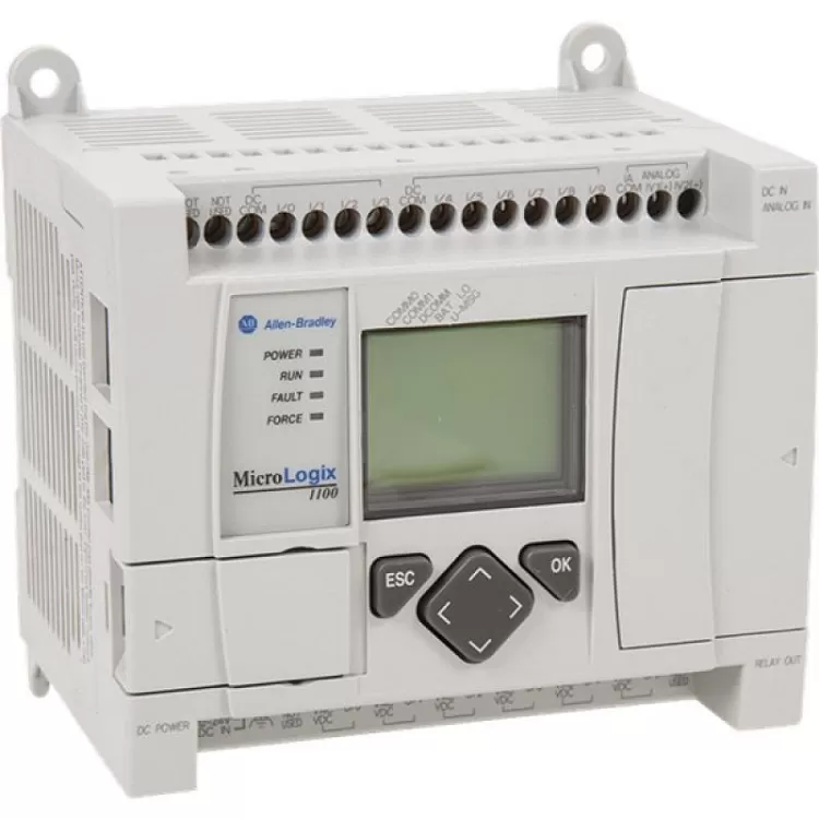 - в MicroLogix 1100 сберегаются возможности предыдущих серий. Инновации состоят в наличии жидкокристаллического дисплея, возможности редактировать в режиме онлайн, в числе необходимых дискретных входов-выходов не превышающих 80, успешно используется программное обеспечение предыдущих серий;